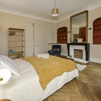 - Storage: free-standing hanging rail, built-in cupboards and bookcases.