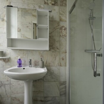 • Private en suite shower room: large shower cubicle, toilet, wash basin and storage cabinet.